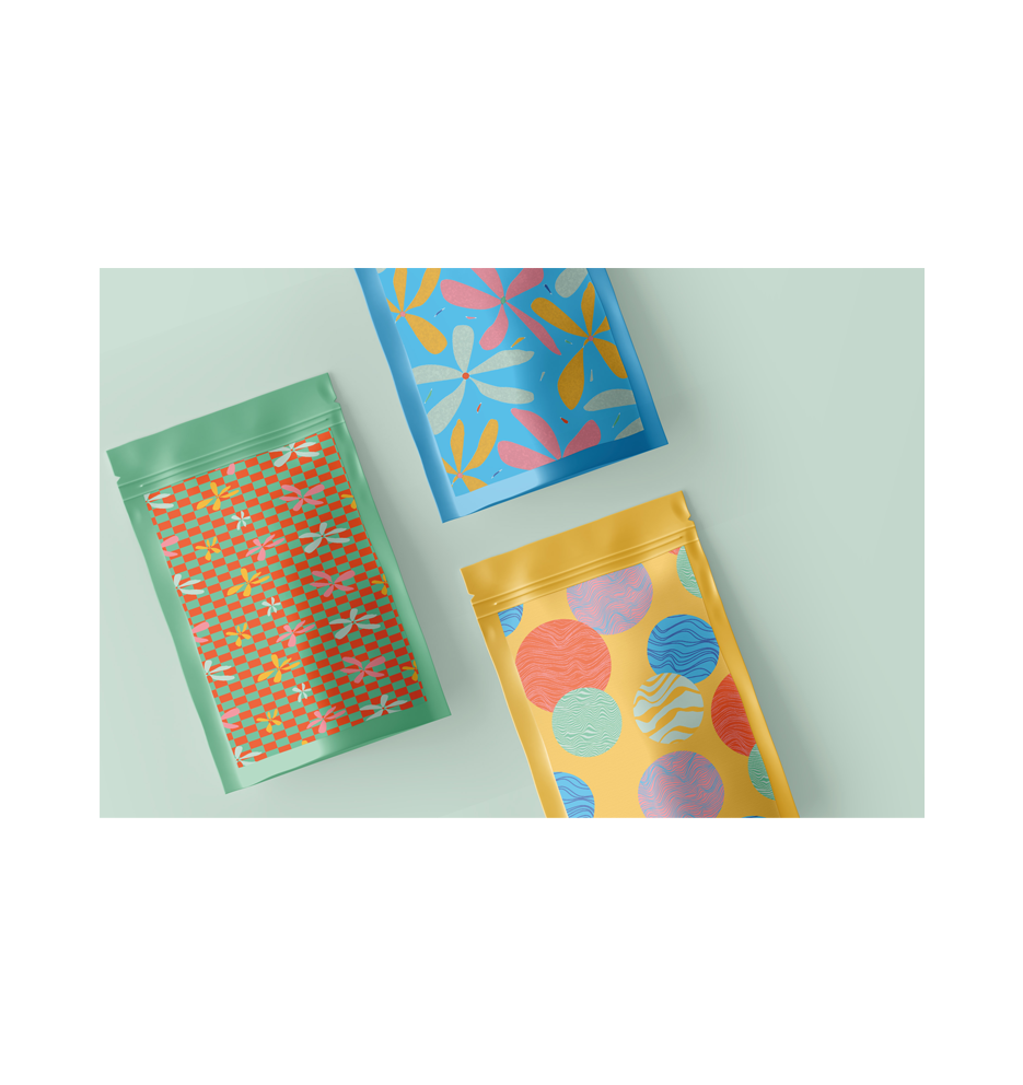 “Keep it Funky” is a bold collection that brings energy and creativity to life with dynamic shapes and vibrant colors. Designed with packaging in mind, it transforms products into striking visual statements through eye-catching patterns and playful hues.